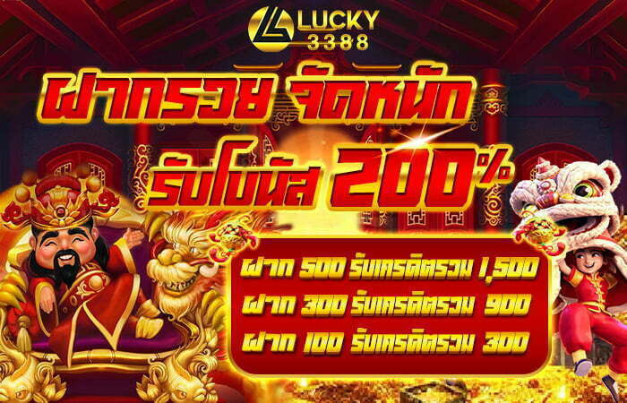 – ฝากรวย จัดหนัก รับโบนัส 200%  สำหรับสมาชิกใหม่ ฝาก 300  รับเพิ่ม 600 ฝาก 500 รับเพิ่ม 1000 บาท และฝาก 1000 บาท รับเพิ่ม 2000 บาท